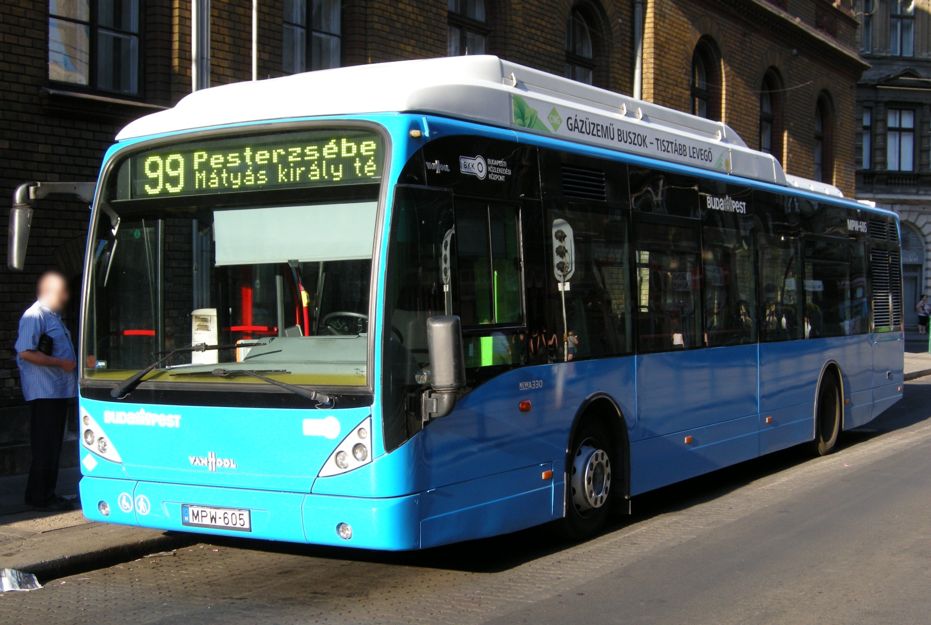 A típus az általunk becsült VanHool A3xx sorozat kéttengelyes változata. De nem csak egy VanHool, hanem egy CNG (kompresszált földgáz) üzemanyaggal működő változata. Erre sokan azt mondanák, a kőolaj és a gáz is a földből jön, hát nem mindegy. Hát bizony nem, a kettő közti különbség ég és föld! Ha CNG üzemanyaggal üzemeltetünk egy járatot, akkor körülbelül négyszer olyan tisztán közlekedünk mint dízelüzemanyaggal (egészségügyi kárt alapul véve). Így egy igen tiszta technológia jelent meg Budapesten.