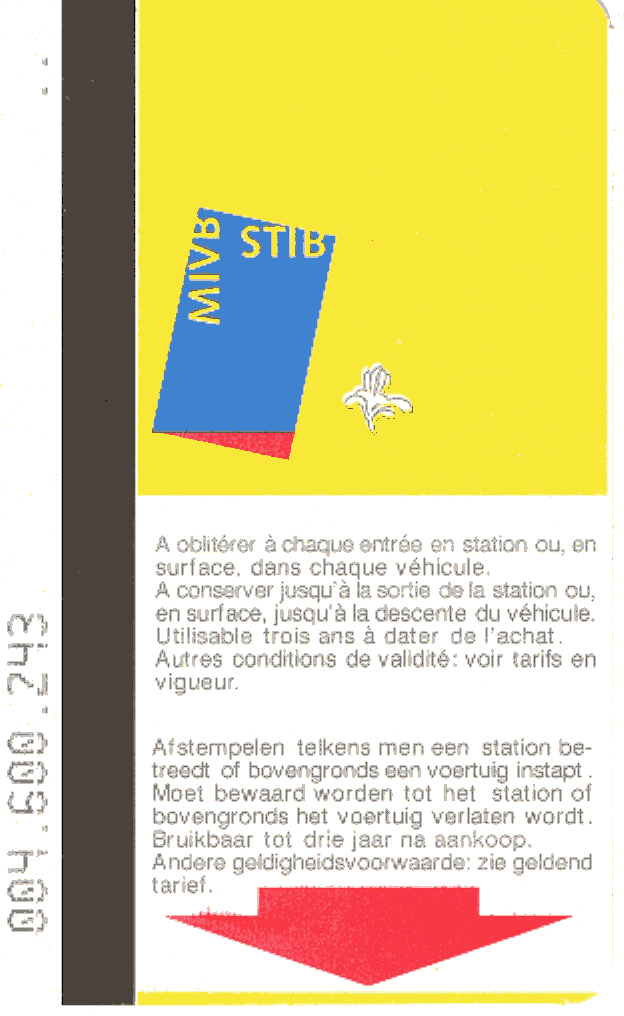 MIVB/STIB (Belgium, Brüsszel) napi jegy. Ez mágnescsíkos: