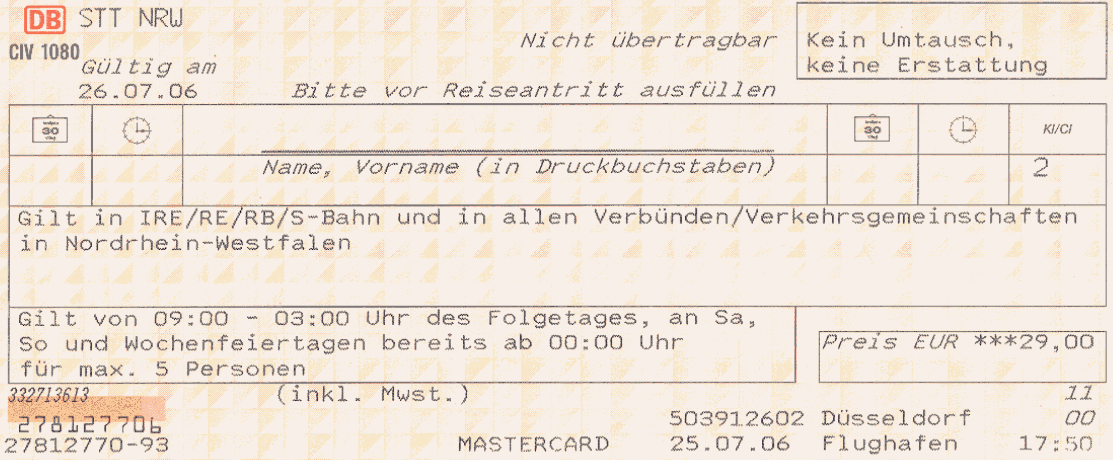 NRW ablaknál vásárolható napijegy. Ezzel egész nap mindenféle tömegközlekedéssel kószálhatsz Észak Rajna-Vesztfáliában (Németország):