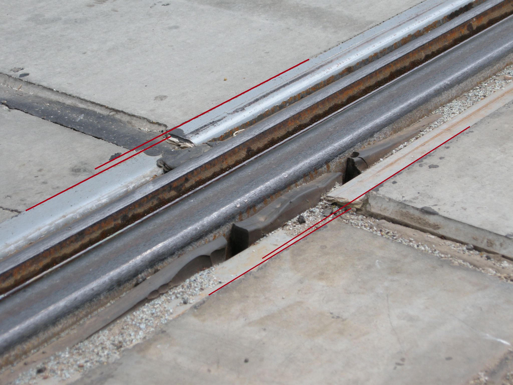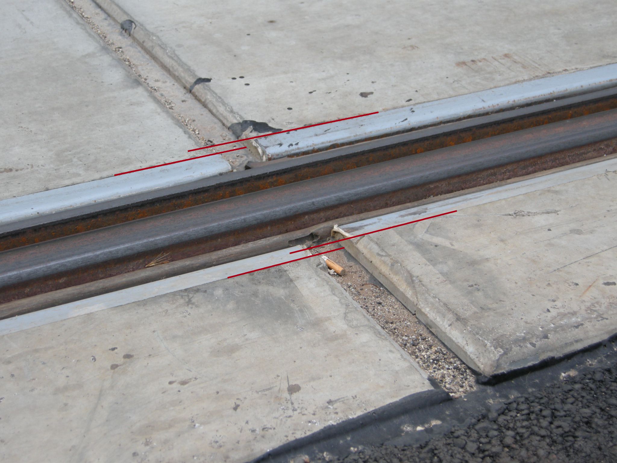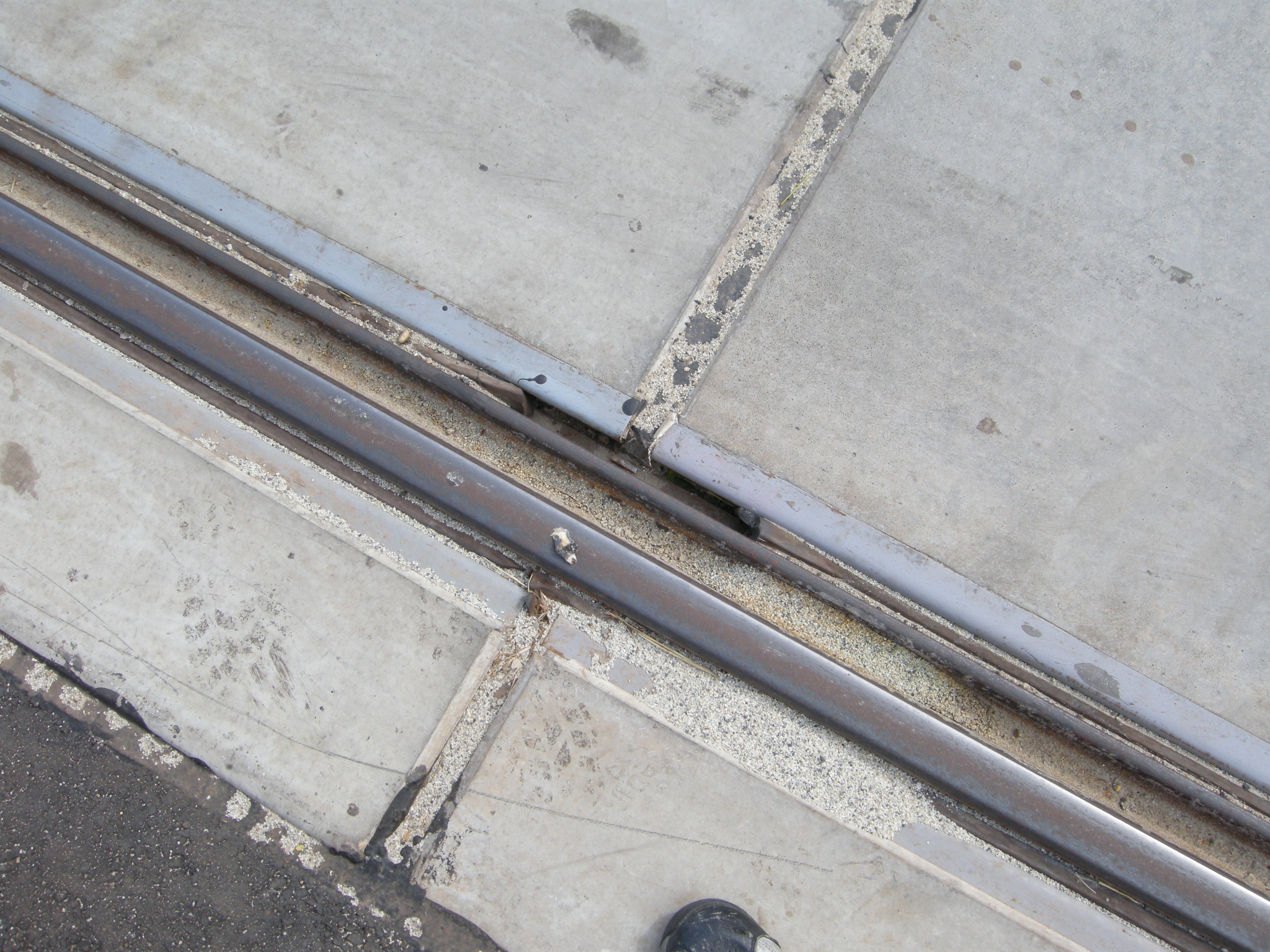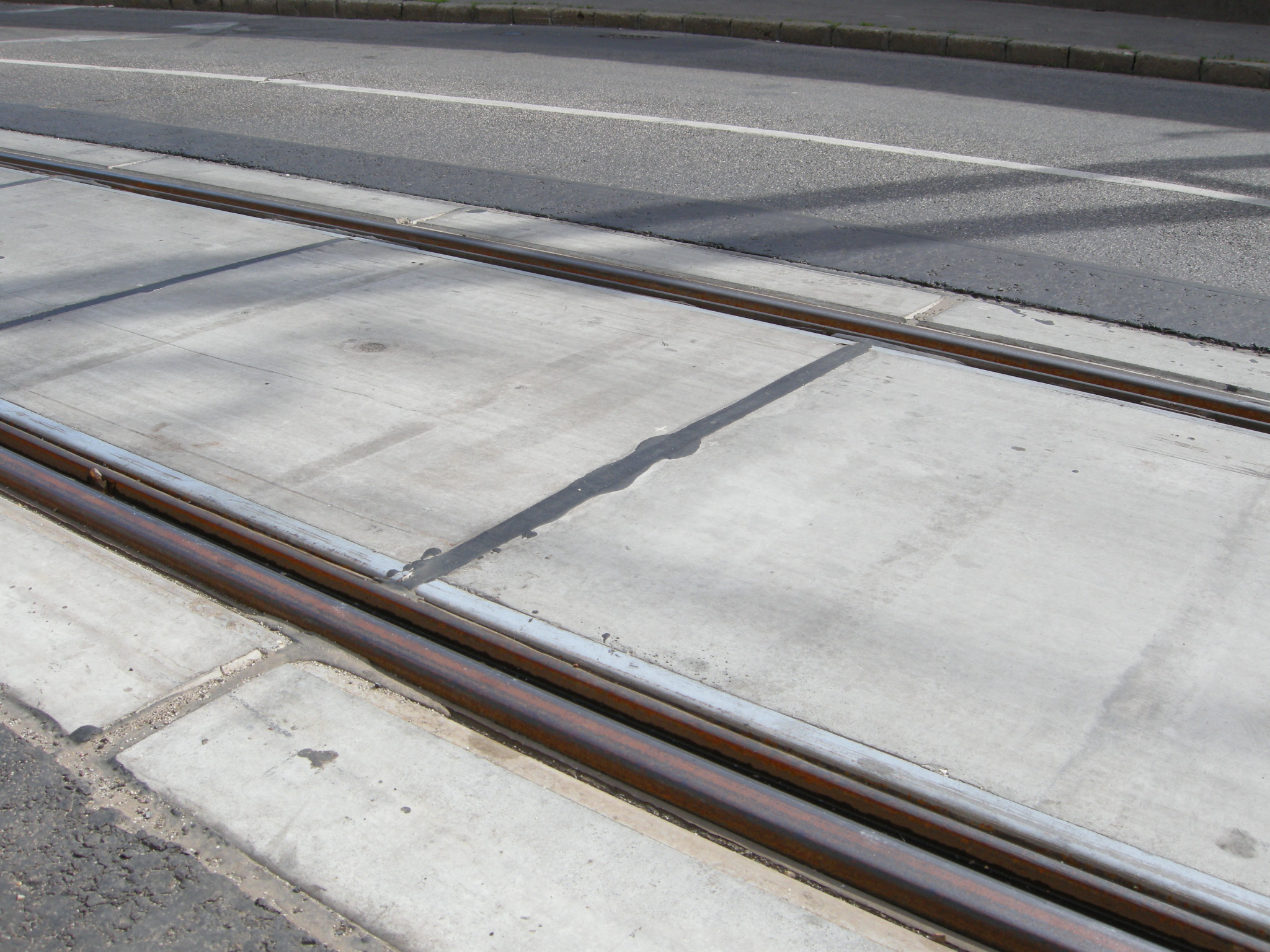 A panelek oldalait betonnal kötötték az úthoz és a járdaszegélyhez, lásd a képet. Ráadásul nem volt megfelelő tömörítő eszköz hozzá (megfelelően keskeny henger). Eredetileg itt makadám kő és kátrány volt. Mivel a panel egy kicsit mindig mozoghat, ezért valószínűleg előbb vagy utóbb ez töredezik majd és később feljön.