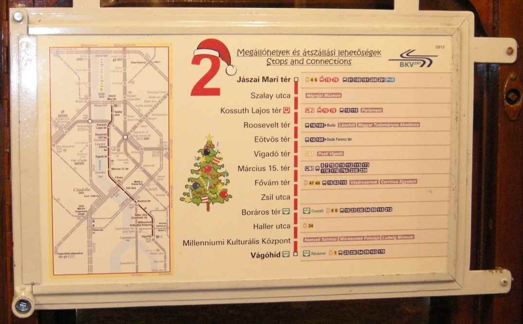 2009 karácsonyán egy jó szokást vett fel a Budapesti Közlekedési Vállalat. A túristák nagy örömére esténként egy feldészített UV típusú villamos közlekedett a 2-es vonalon.